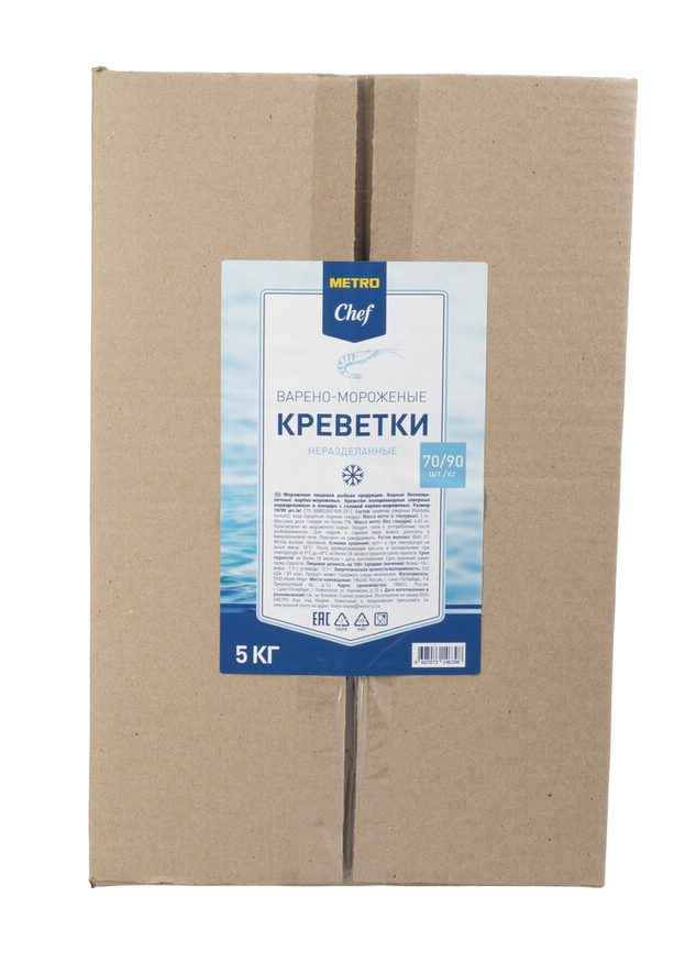 METRO Chef Креветки северные Pandalus borealis 70/90 шт/кг неразделанные варено-мороженые, короб 5кг. Содержание глазури 7%.