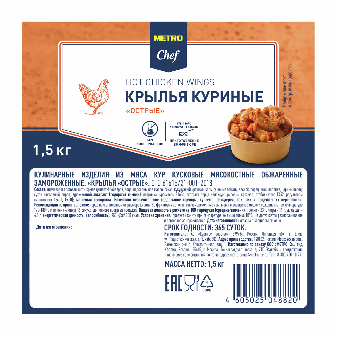 METRO Chef Крылья куриные острые замороженные, 1.5кг