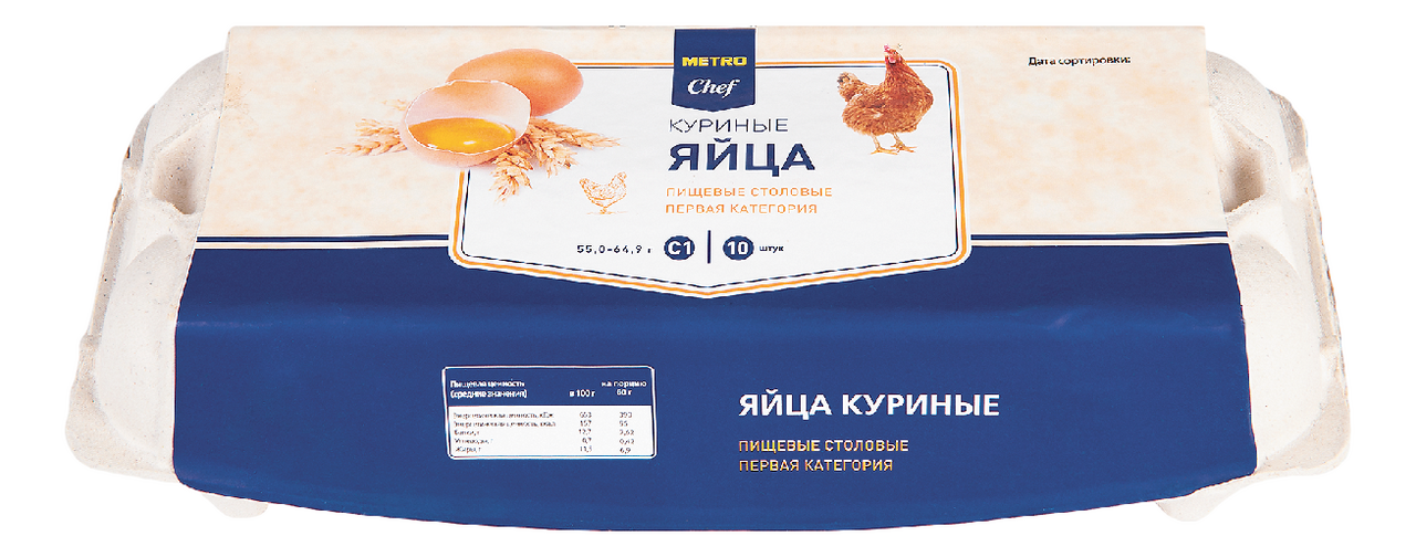 Яйцо METRO CHEF куриное столовое первой категории, 10 шт. – это высококачественный продукт, который постоянно используется как в домашних условиях, так и во всех предприятиях общественного питания. Невозможно перечислить все блюда, в которых яйца являются незаменимым ингредиентом. Их употребляют в жареном и вареном виде, варят вкрутую, всмятку, в мешочек, жарят в виде яичницы или омлета, добавляют различные продукты (колбасу, ветчину, сыр, грибы и т. д.). Яйца добавляют в тесто, в начинку, в кремы для сладкой и несладкой выпечки, используют в качестве заливки при запекании мяса и овощей, добавляют в кляр при обжаривании отбивных, цветной капусты. Они становятся основой соусов, незаменимым ингредиентом салатов и запеканок. Их употребляют даже в сыром виде. Яйца используются не только в кулинарии, но и в косметологии и нетрадиционной медицине. Поскольку сфера применения этого продукта огромна, очень важно обращать внимание на качество яиц. Производитель ответственно относится к процессу кормления кур-несушек и соблюдает все правила хранения и транспортировки яиц. Поэтому они не только соответствуют стандартам качества, но и не вредят организму как это бывает при добавлении в корм антибиотиков и различных добавок.