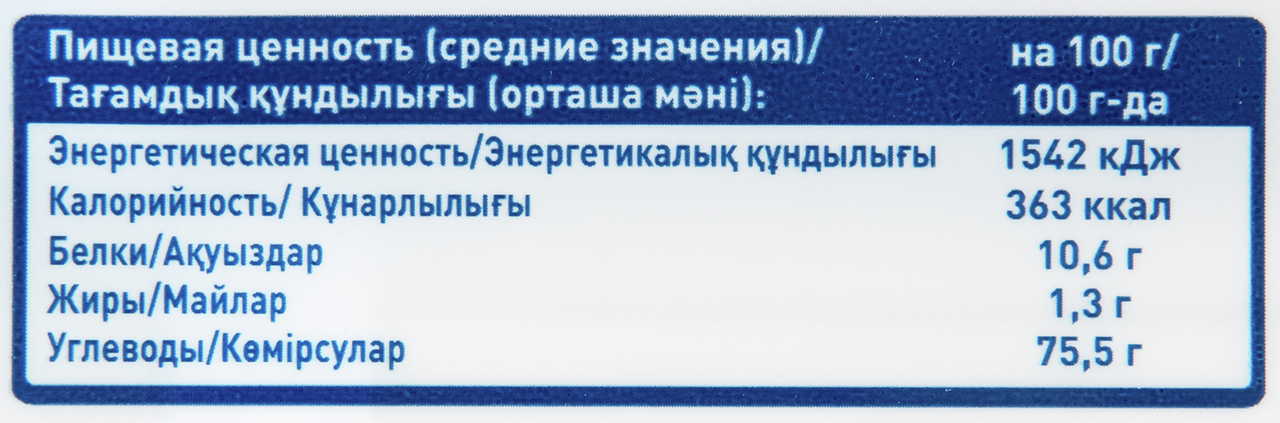 - Энергетическая ценность, ккал/100 г 363