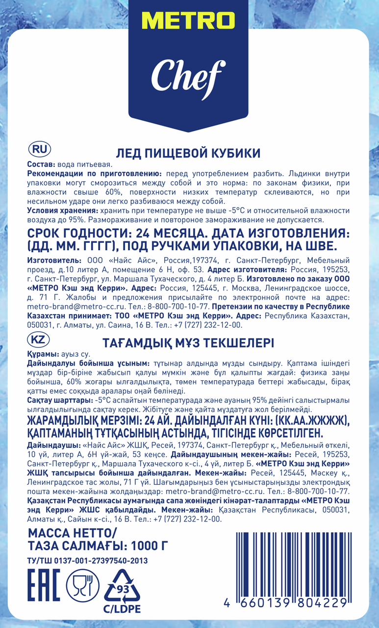 METRO Chef Лед пищевой кубик, 1кг
