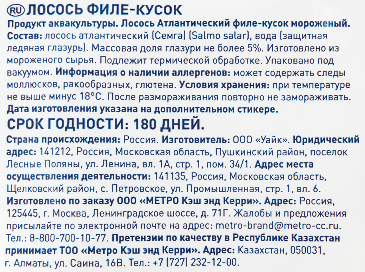 Лосось атлантический (Семга), вода (защитная ледяная глазурь).