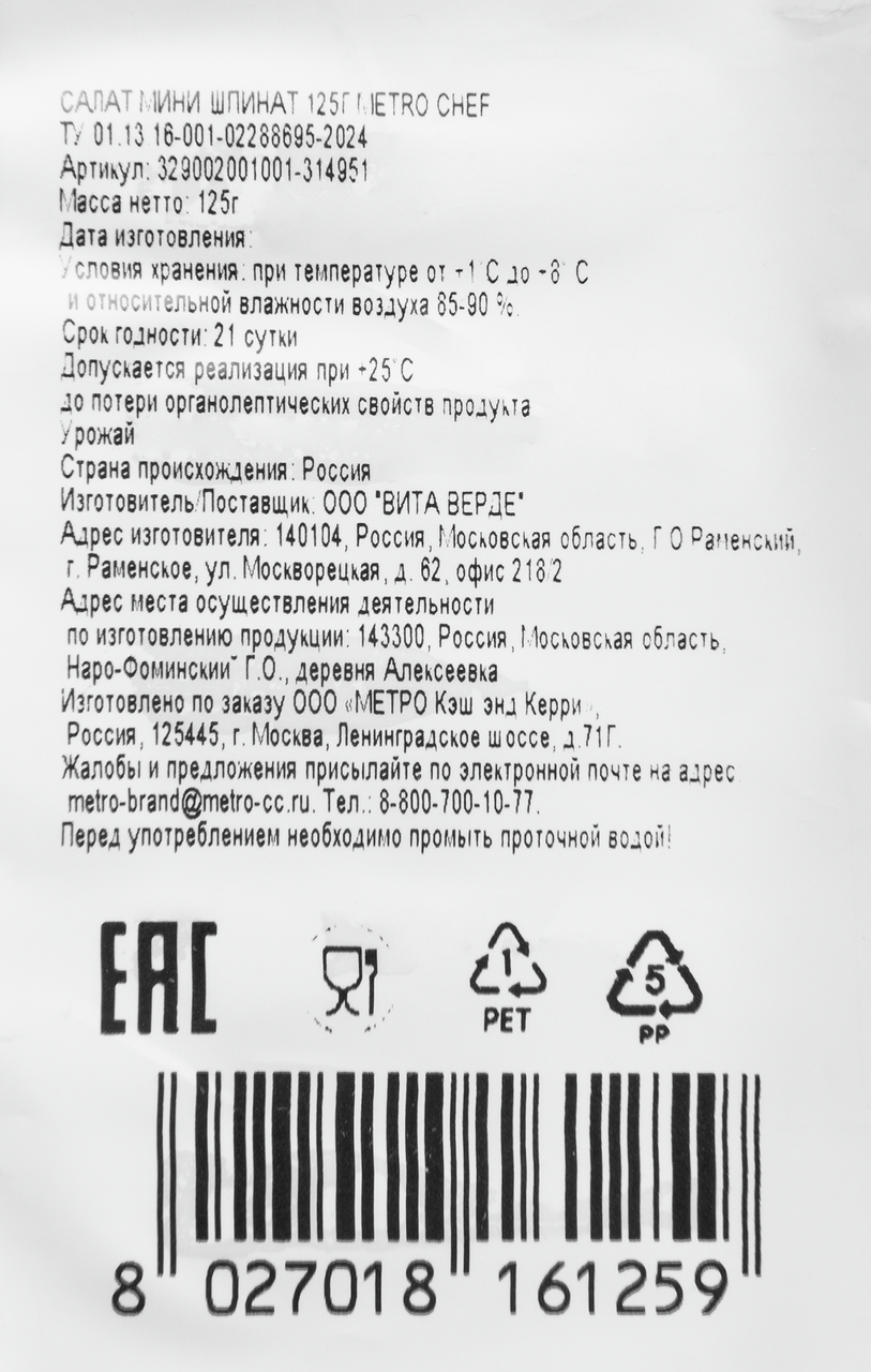 METRO Chef Салат Шпинат мини, 125г