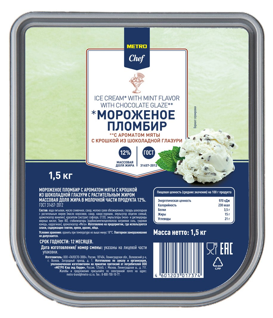 Невероятно нежный освежающий вкус мятного мороженого с добавлением мелкой шоколадной крошки в удобной упаковке 1500кг.