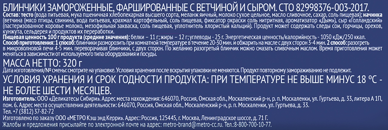 METRO Chef Блины с ветчиной и сыром замороженные, 320г