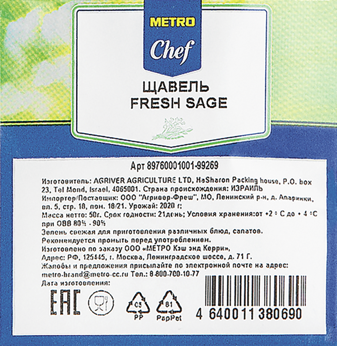 Щавель Metro Chef - это род трав семейства гречишных. Имеет широкое применение в кулинарии, с ним можно готовят горячие и холодные супы, добавляют в салаты, гарниры. Также щавель можно сушить или солить.