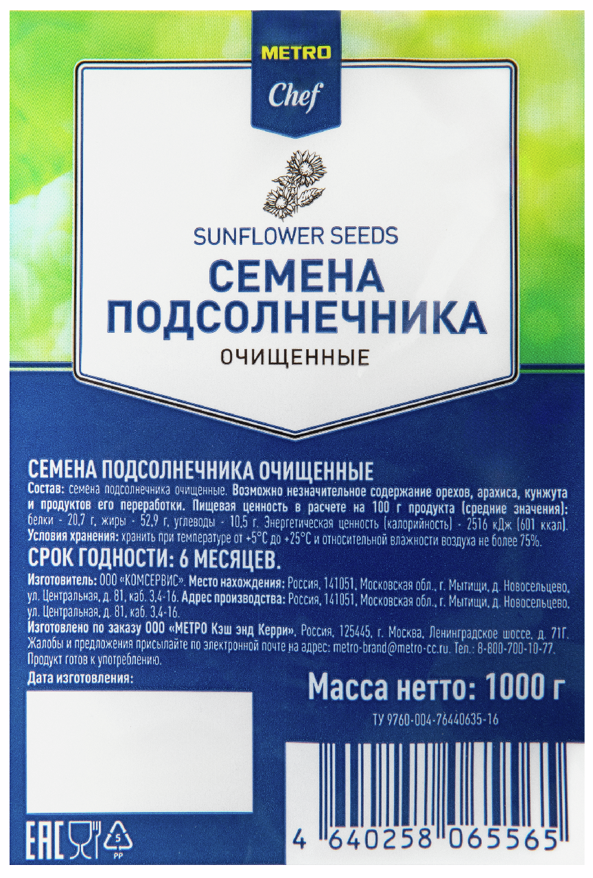 METRO Chef Семена подсолнечника очищенные сушеные, 1кг