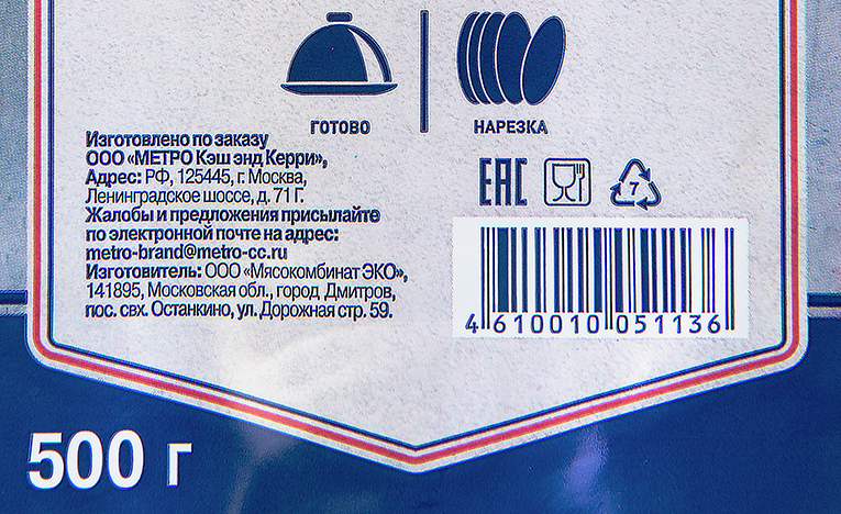 Сервелат зернистый Metro Chef 500 г – это вкусный мясной деликатес, который придется по вкусу как взрослым, так и детям. Он обладает ярким, насыщенным вкусом и приятным ароматом. Такой деликатес станет настоящим украшением обеденного или праздничного стола. Ломтики сервелата на разрезе имеют характерный темно-красный цвет. Они очень пластичные. Сервелат активно применяют для приготовления различных холодных закусок, салатов и в качестве начинок для бутербродов. Кроме того, подавать сервелат можно в качестве нарезки.