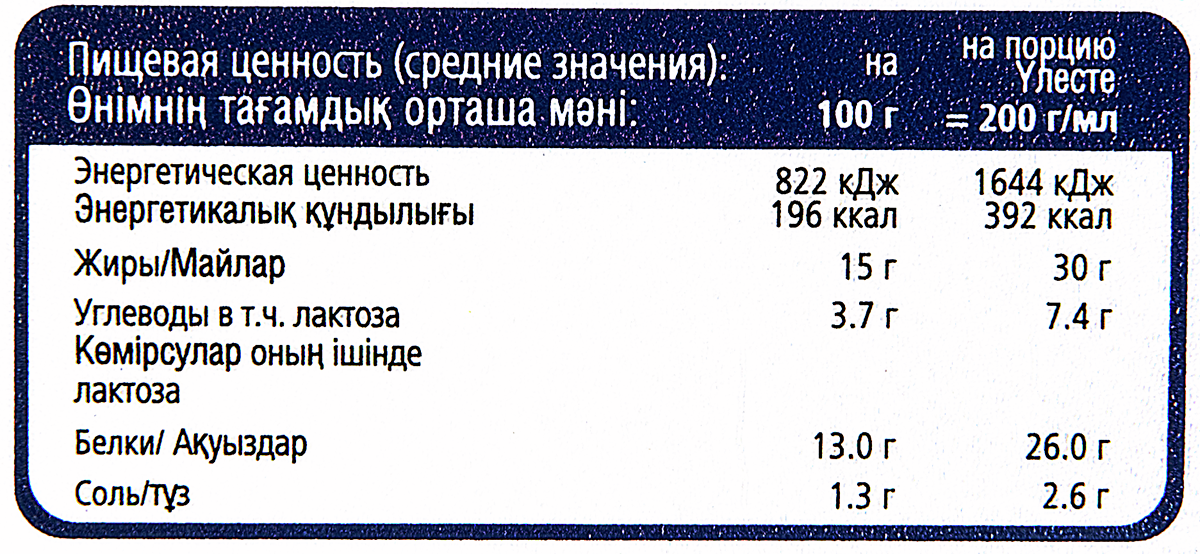 Молоко животного происхождения пастеризованное, соль поваренная пищевая, бактериальные закваски термофильных молочнокислых микроорганизмов, молокосвертывающий ферментный препарат микробиального происхождения.