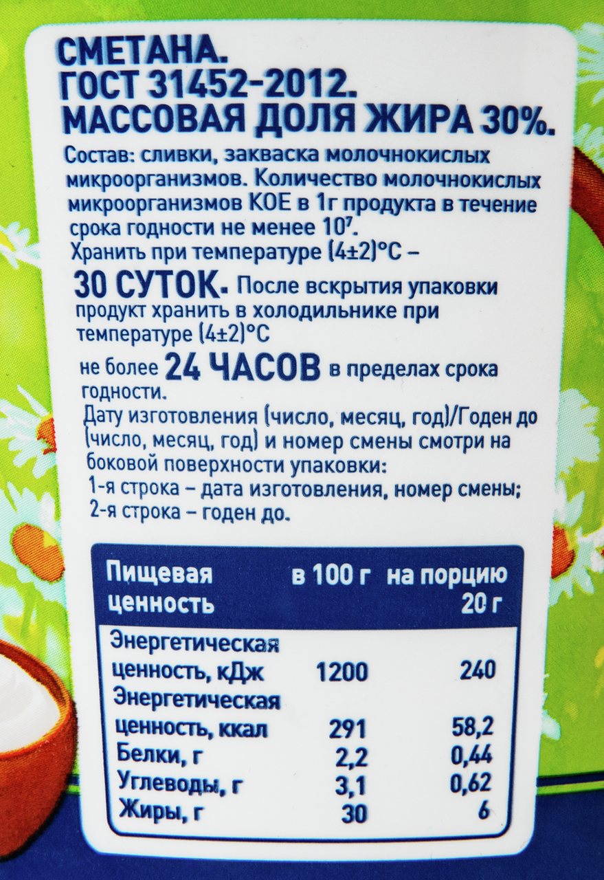 Вкусный кисломолочный продукт, пользующийся стабильным заслуженным спросом. Она обладает приятным сливочным вкусом с характерной деликатной кислинкой. Производится сметана по традиционной рецептуре из натуральных ингредиентов. Она богата полезными витаминами, микрокомпонентами и жирными кислотами, поэтому продукт должен присутствовать в рационе каждого человека. Сметана широко используется хозяйками в кулинарии и для приготовления различных блюд. Из нее делают густые соусы, подают к первым блюдам, голубцам, фаршированному перцу, вареникам и пельменям.