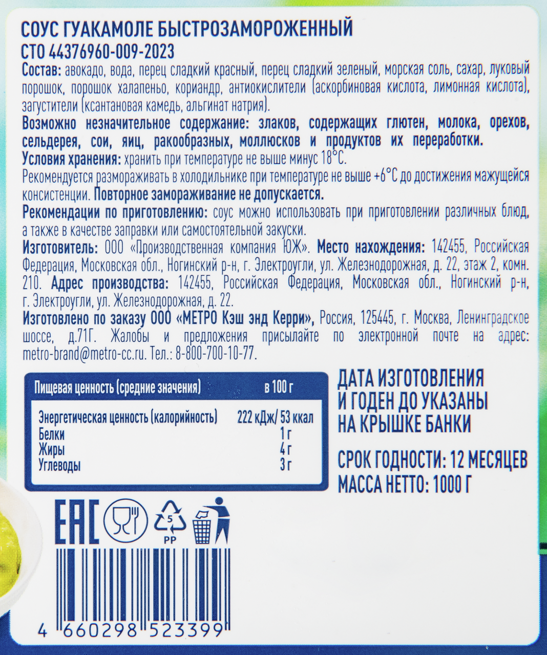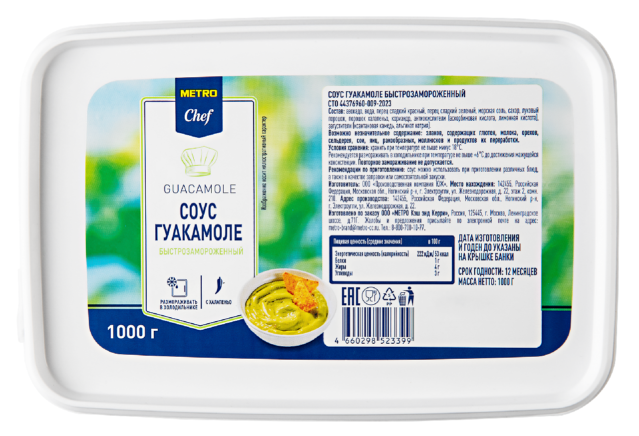 METRO Chef Соус гуакамоле замороженный, 1кг
