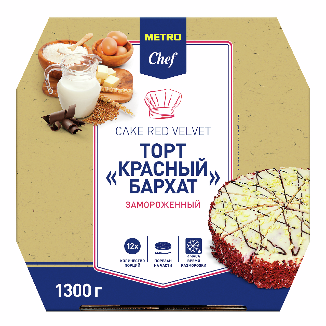 METRO Chef Торт Красный бархат 12 порций замороженный, 1.3кг