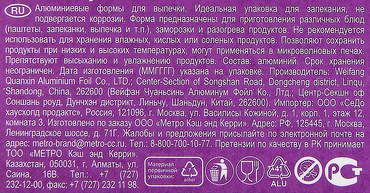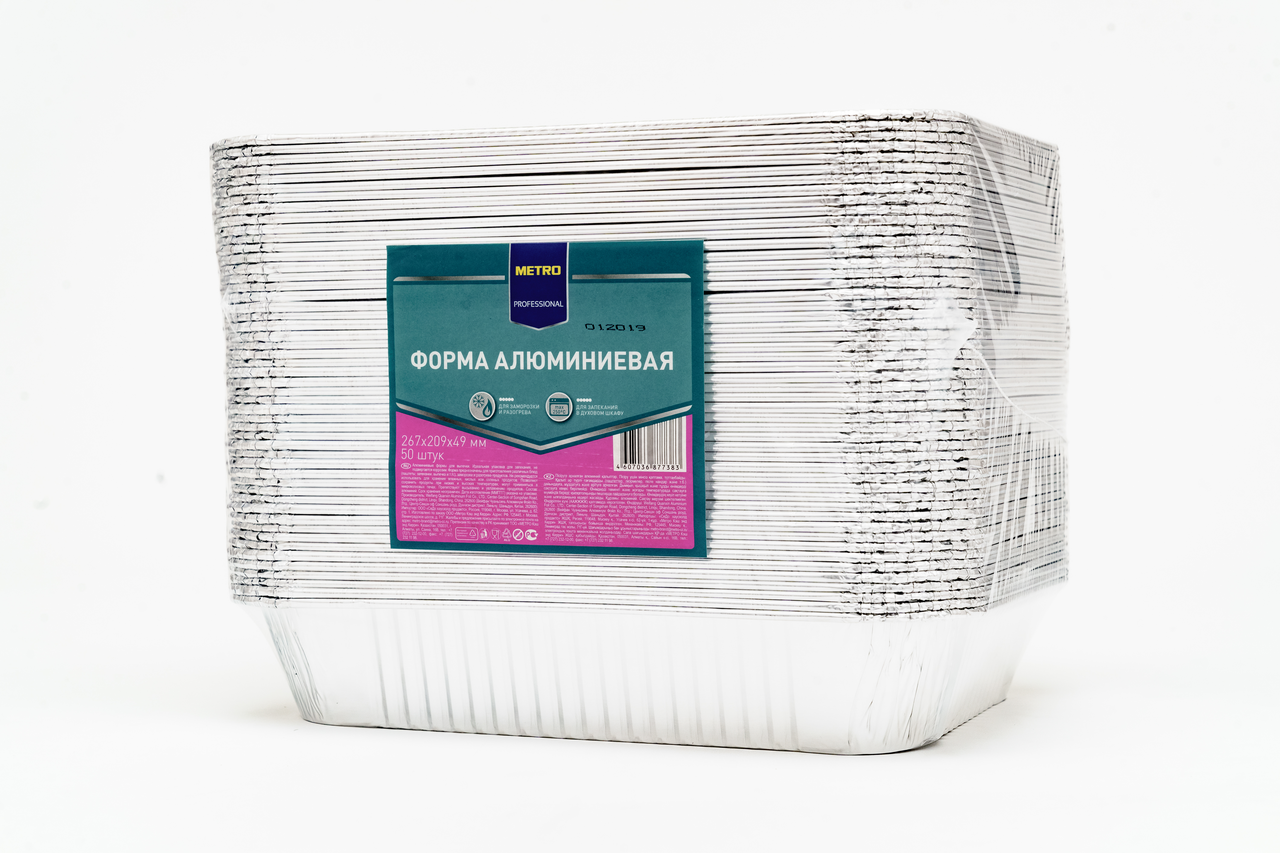 METRO PROFESSIONAL Алюминиевые формы для запекания, 50 шт., 267x209x49 см — жаропрочная форма с удобными бортиками, которая хорошо подойдет для приготовления различных блюд. К материалу продукты не прилипают, и готовое кушанье легко извлекается. Изделие можно использовать в газовых и электрических духовых шкафах, морозильных камерах. Алюминиевая форма подходит для хранения и заморозки продуктов, приготовления желе или холодца. Пищевой материал не впитывает посторонние запахи. В упаковке — 10 форм.