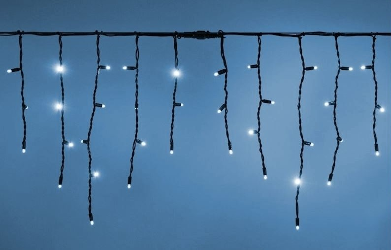 Драматичный свет для смелых решений! Черный провод делает эту гирлянду практически невидимой, оставляя только эффектные световые сосульки, струящиеся вниз. Переключение между теплым и холодным светом позволяет менять характер освещения от уютного до торжественного. Создайте на своем фасаде иллюзию волшебного ледяного дворца!
