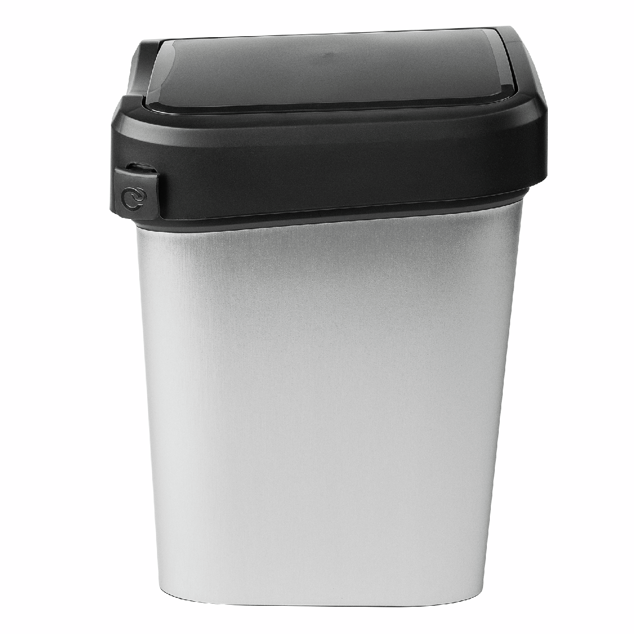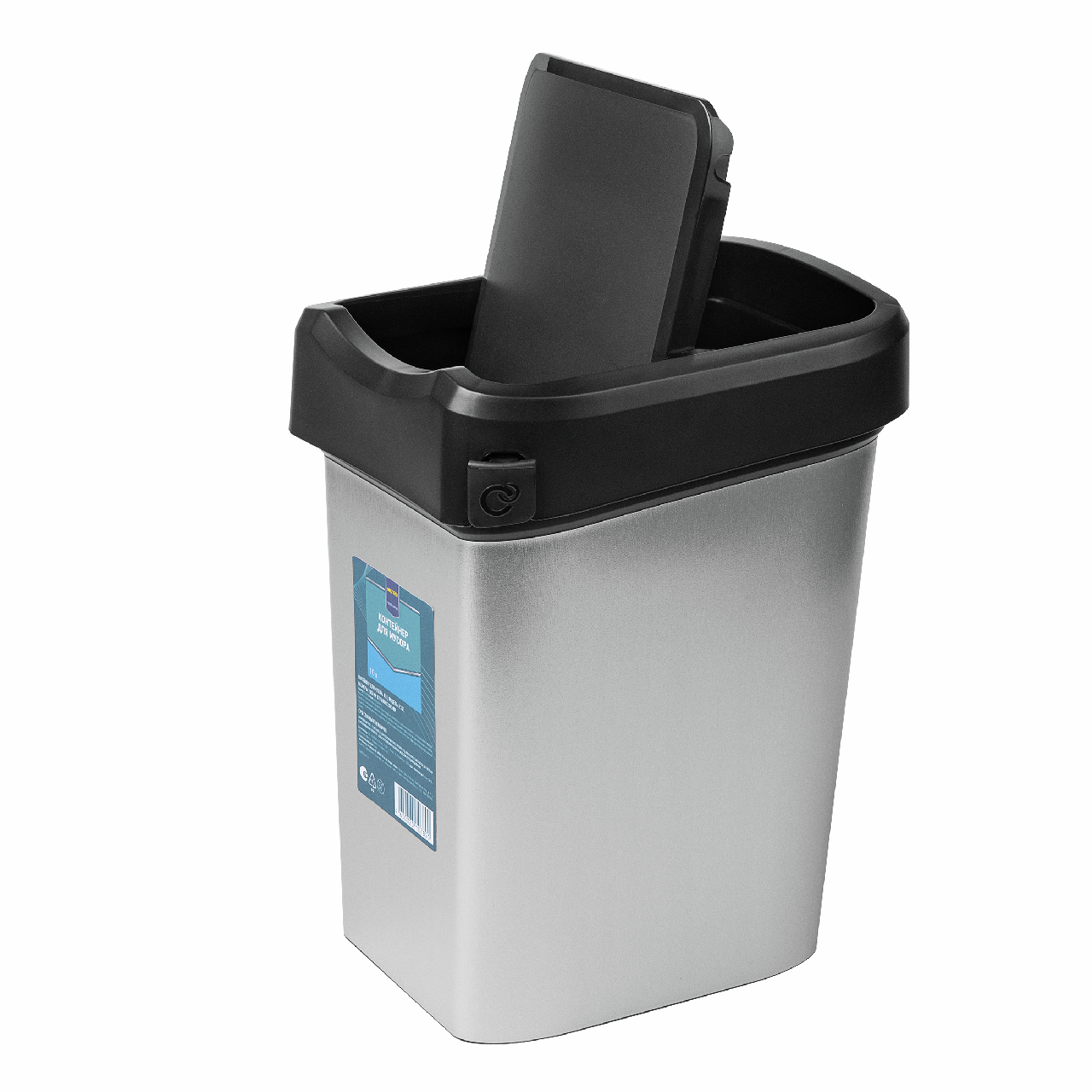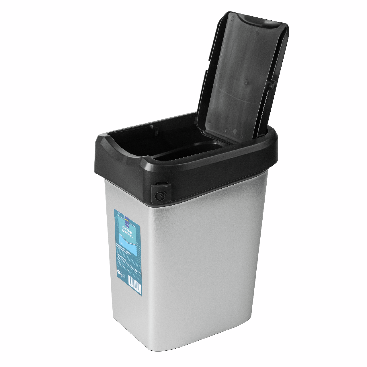 Изготовлен из прочного пластика. Удобная система открывания крышки позволит выбросить мусор в ведро даже с занятыми руками, просто толкнув створку вниз. Крышка может фиксироваться в открытом положении для крупного мусора. Контейнер для раздельного сбора мусора имеет специальное крепление для мусорных пакетов, блокирует неприятные запахи, препятствуя их распространению. Благодаря стильной металлизированной поверхности контейнер гармонично впишется в интерьер кухни, ванной, спальни, офиса и любого другого помещения. Поверхность контейнера легко моется, на ней не остается разводов.