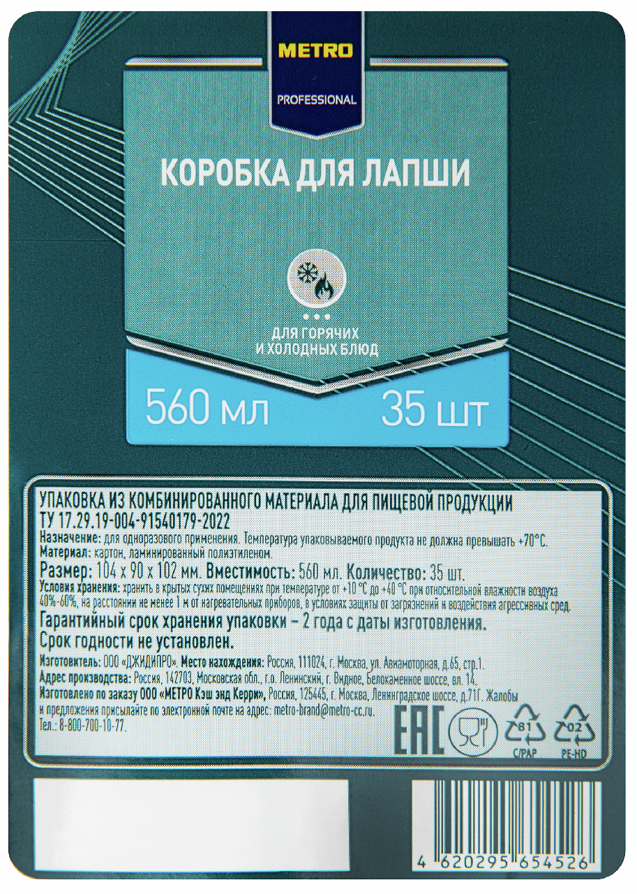 METRO PROFESSIONAL Коробка для лапши крафт и картон, 35шт