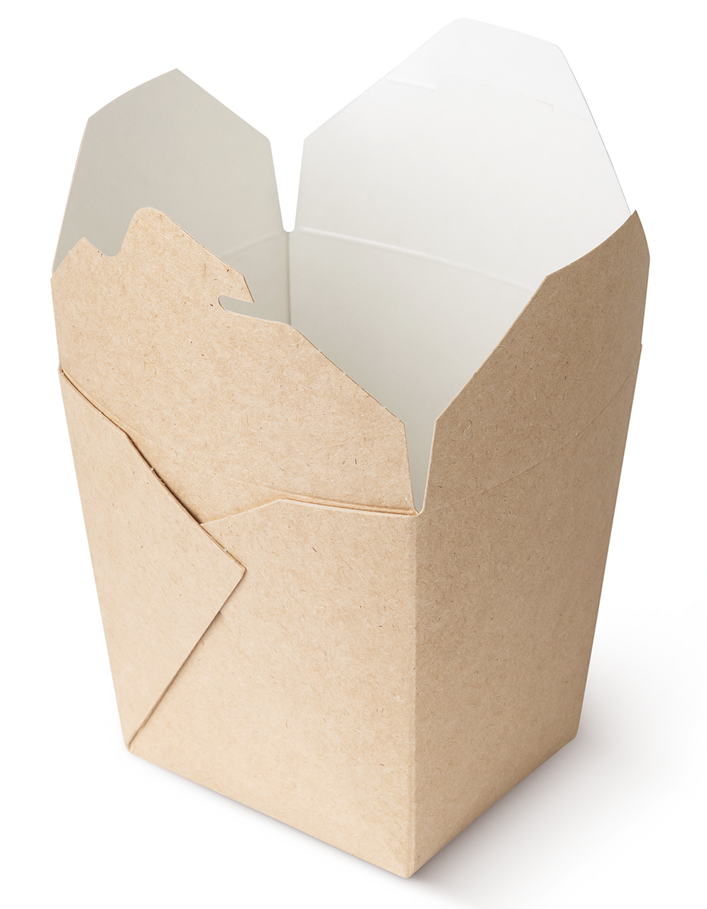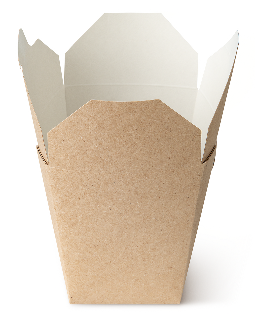 Упаковка герметична и не пропускает жир и влагу. Она полностью ламинирована изнутри. Подходит для использования в микроволновой печи. Эта упаковка идеально подходит для лапши вок, пасты и риса. Её не нужно собирать, она уже готова к использованию. Крышка имеет лепестки, которые можно зафиксировать. Это избавляет от необходимости использовать дополнительную посуду. Такая упаковка отлично подходит для доставки готовых блюд.