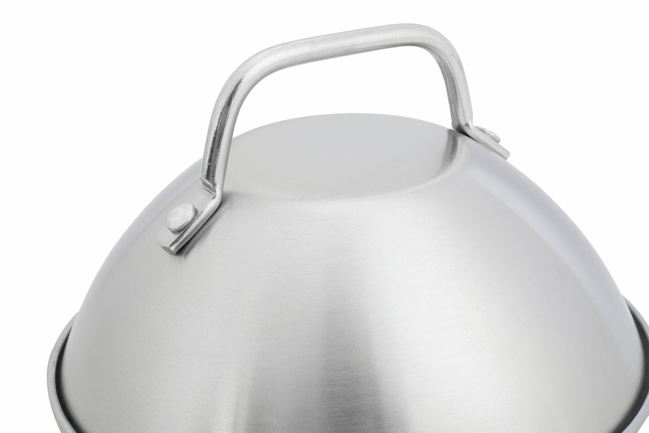 Крышка-клош для гриля Metro Professional - прочный, функциональный и стильный аксессуар для профессиональных мероприятий и предприятий общепита под открытым небом. Изготовлен из нержавеющей стали, устойчив к механическим воздействиям и лёгок в уходе. Компактные размеры и эргономичная ручка обеспечивают удобство транспортировки и быструю установку на любом месте работы. Клош эффективно защищает содержимое от пыли, загрязнений и посторонних запахов, сохраняя свежесть и качество продуктов. Легко чистится и легко мыть в посудомойке, что облегчает рутинную эксплуатацию.