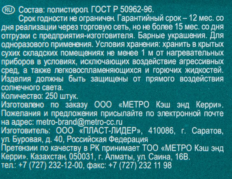 METRO PROFESSIONAL Пика Сердце из полистирола микс цветов, 250шт