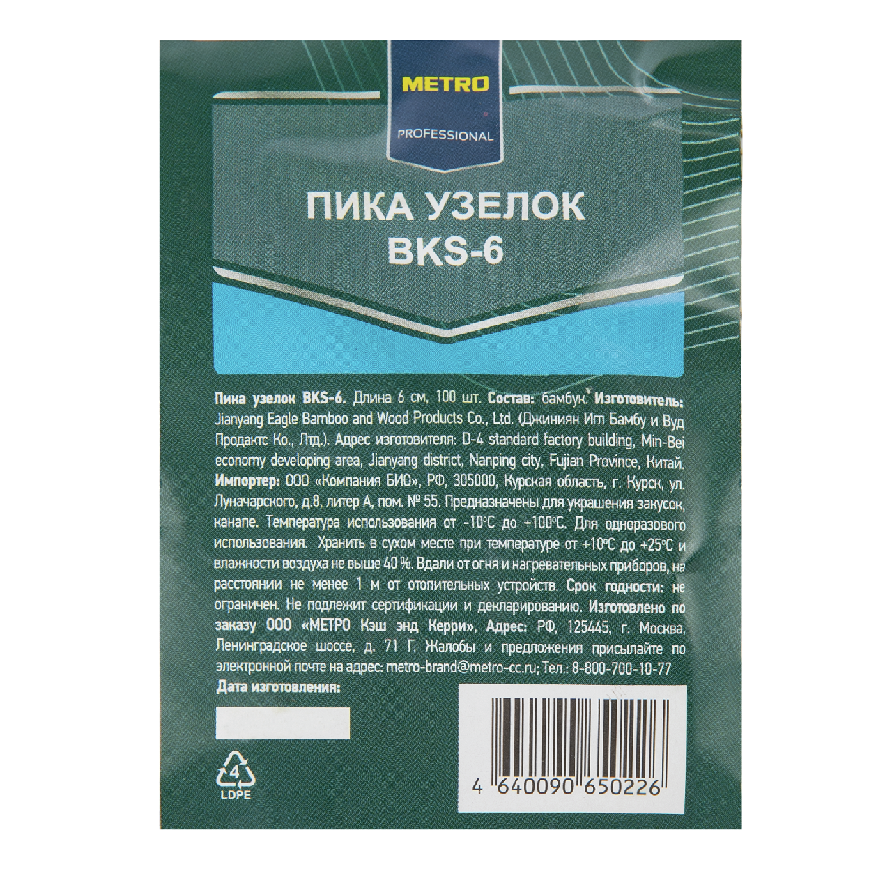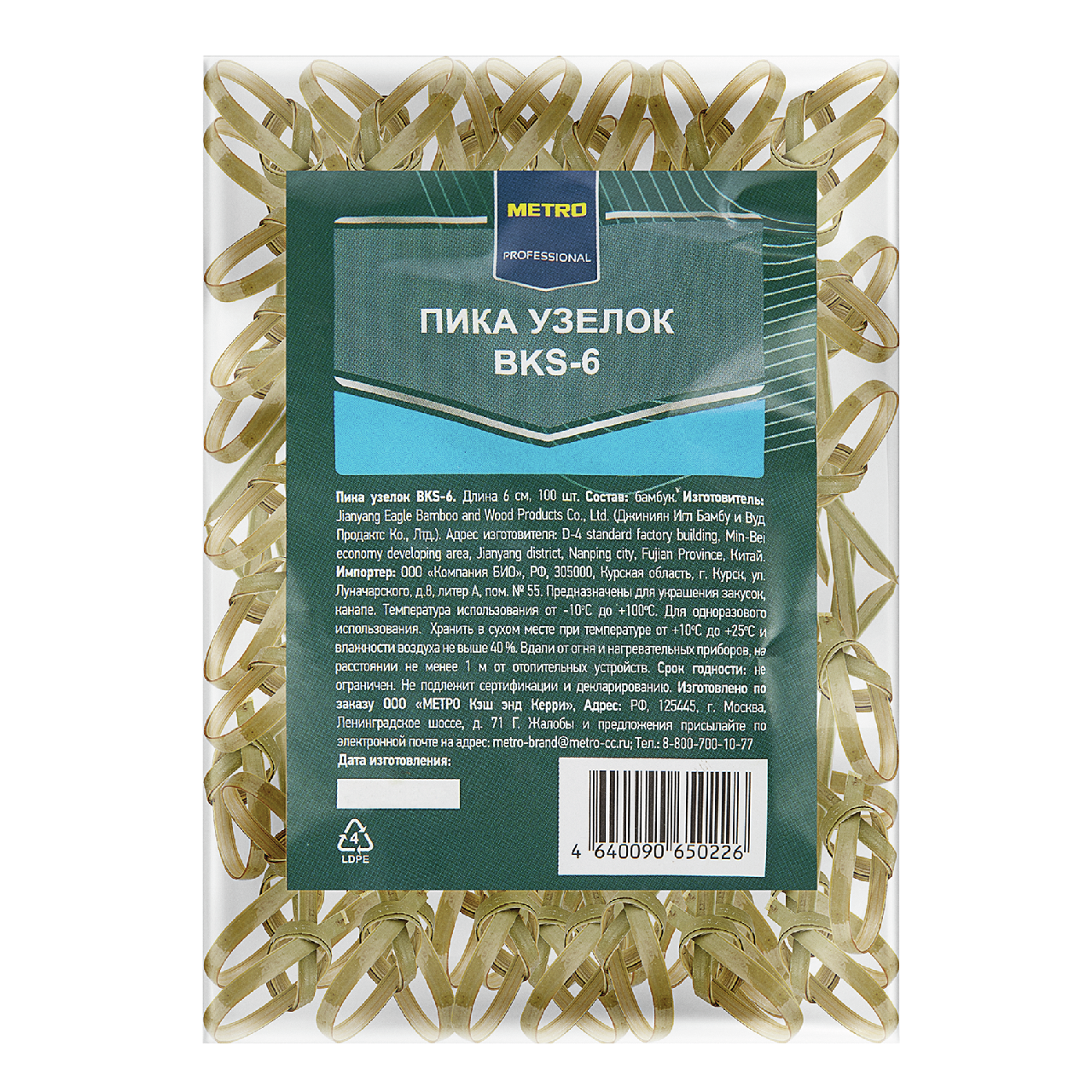 METRO PROFESSIONAL Пика Узелок бамбуковая 6см, 100шт