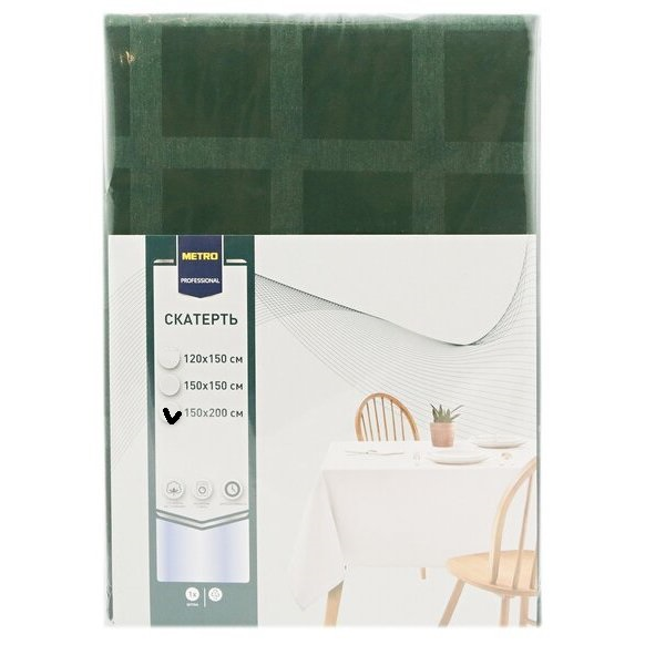 METRO PROFESSIONAL Скатерть профессиональная зеленая, 150 х 200см это красивая плотная ткань, качественная обработка шва. Благородный хлопок с плетением рогожка приятен наощупь. Натуральная мягкая ткань обладает прекрасным впитывающим свойством, легко стирается и быстро сохнет.