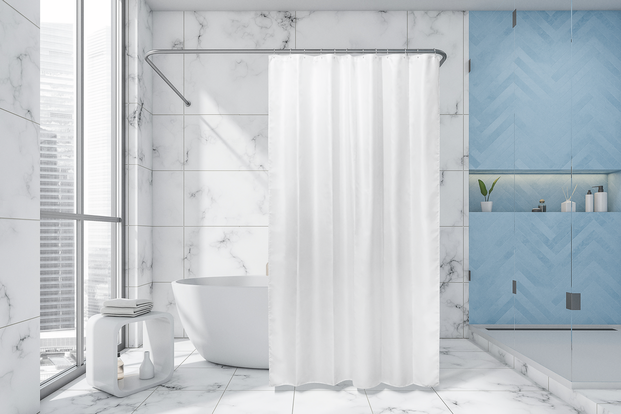METRO PROFESSIONAL Штора для ванной двойная со встроенными кольцами ПВХ, 180 x 200см