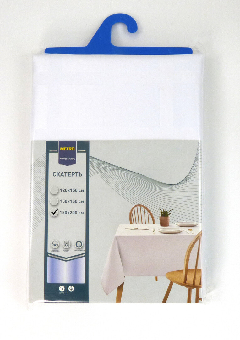 METRO PROFESSIONAL Скатерть профессиональная, 150 х 200см это красивая плотная ткань, качественная обработка шва. Благородный хлопок с плетением рогожка приятен наощупь. Натуральная мягкая ткань обладает прекрасным впитывающим свойством, легко стирается и быстро сохнет.