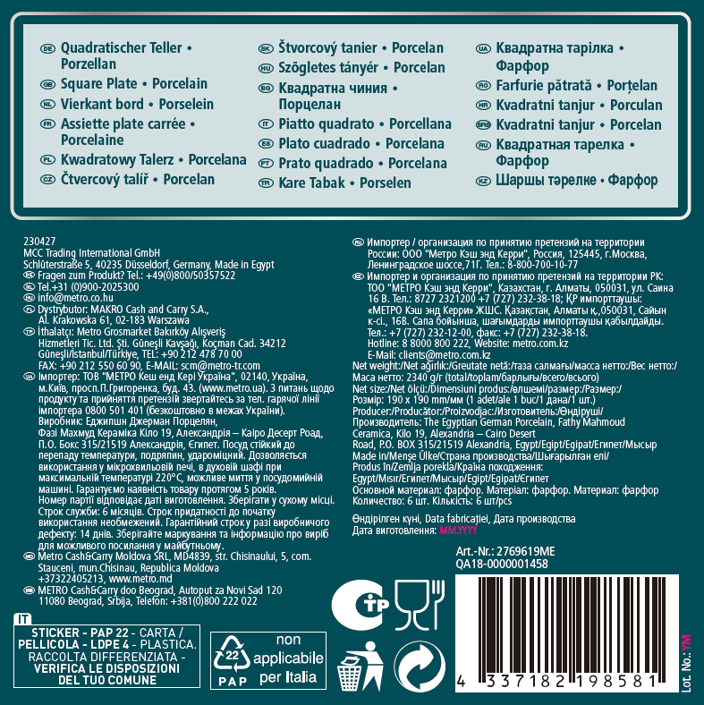 METRO PROFESSIONAL Тарелка десертная Modern квадратная 19см, 6шт