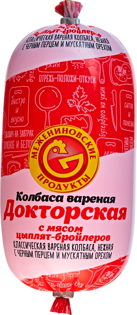 Колбаса Межениновская птицефабрика Докторская с мясом цыплят-бройлеров вареная, 500г