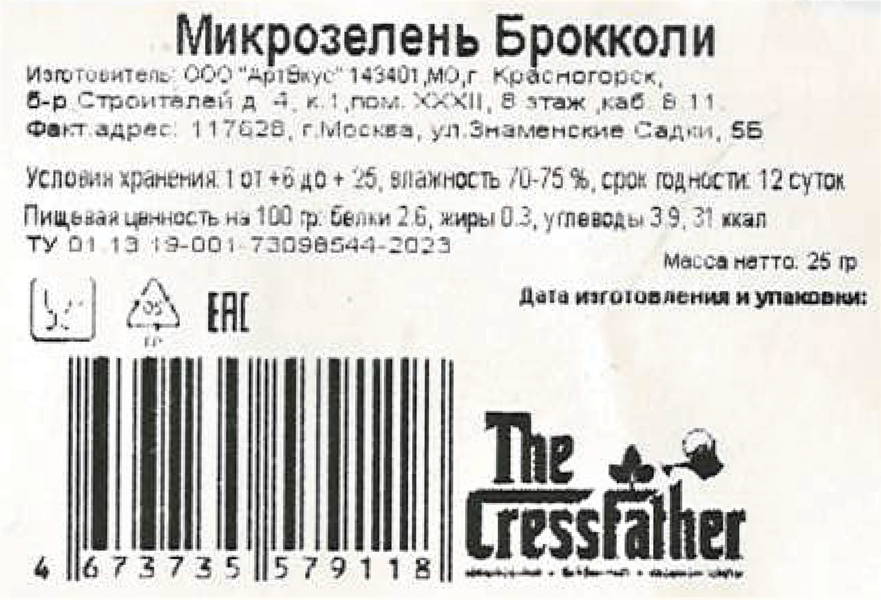 Микрозелень брокколи, 25г
