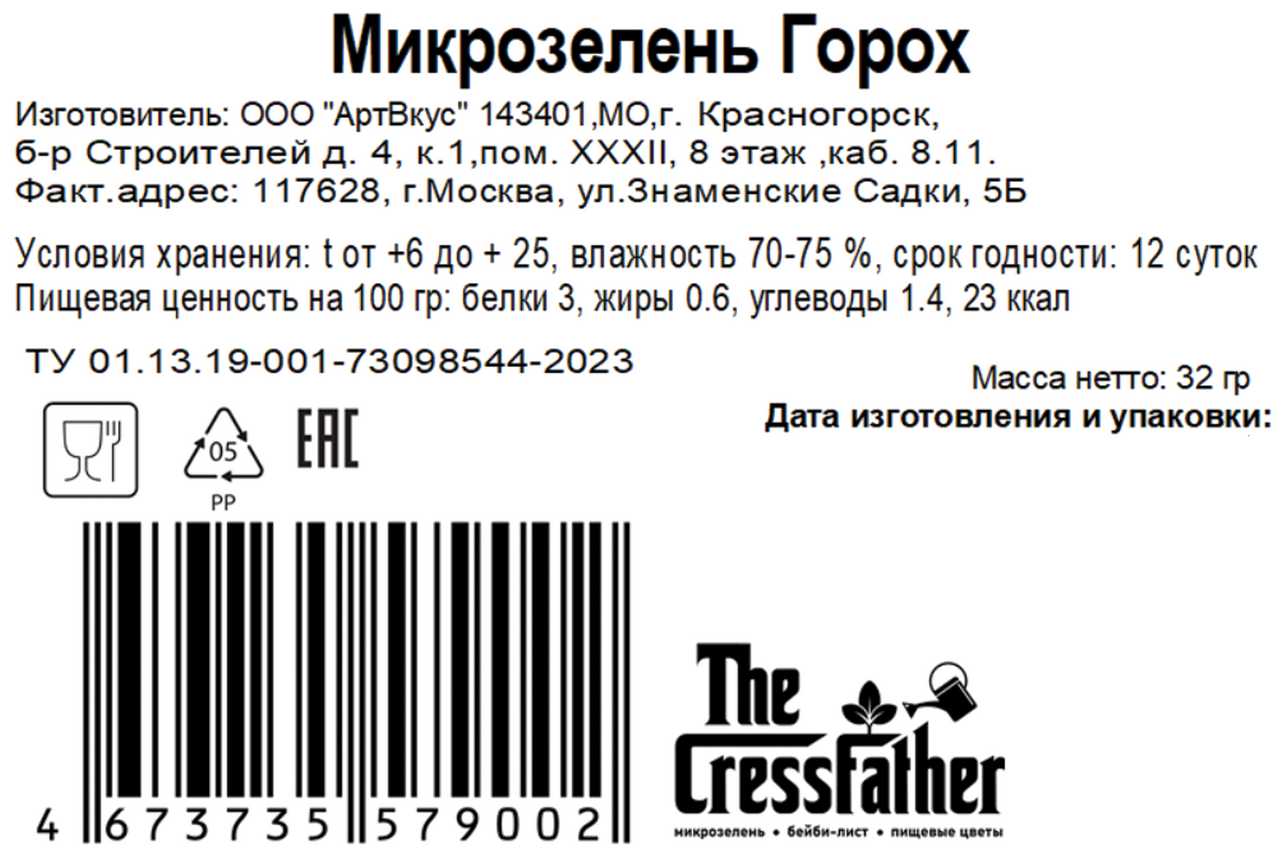 Кучерявый и свежий, сладкий и нежный. Вкус молодого зеленого горошка, знакомый с детства каждому. Это нежные молодые ростки зелени, содержащие максимальную концентрацию витаминов, минералов и биологически активных веществ.