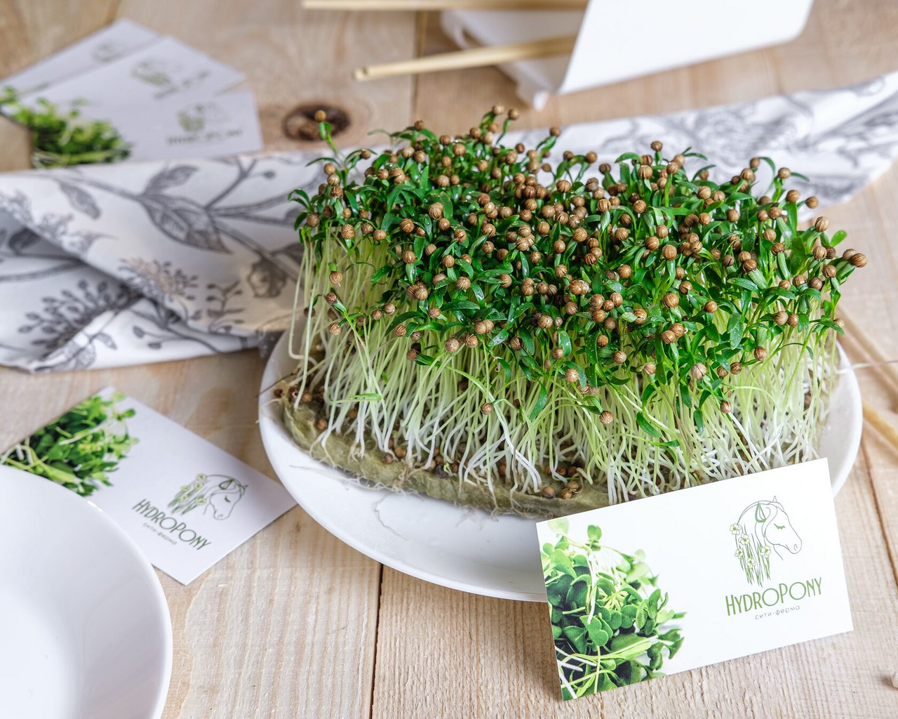 Микрозелень Кинза, 190г масса витаминов и полезных минералов, например селен и магний. А также богата она и антиоксидантами. Ну и конечно, благодаря своей расцветке, она станет украшением любого вашего блюда.
