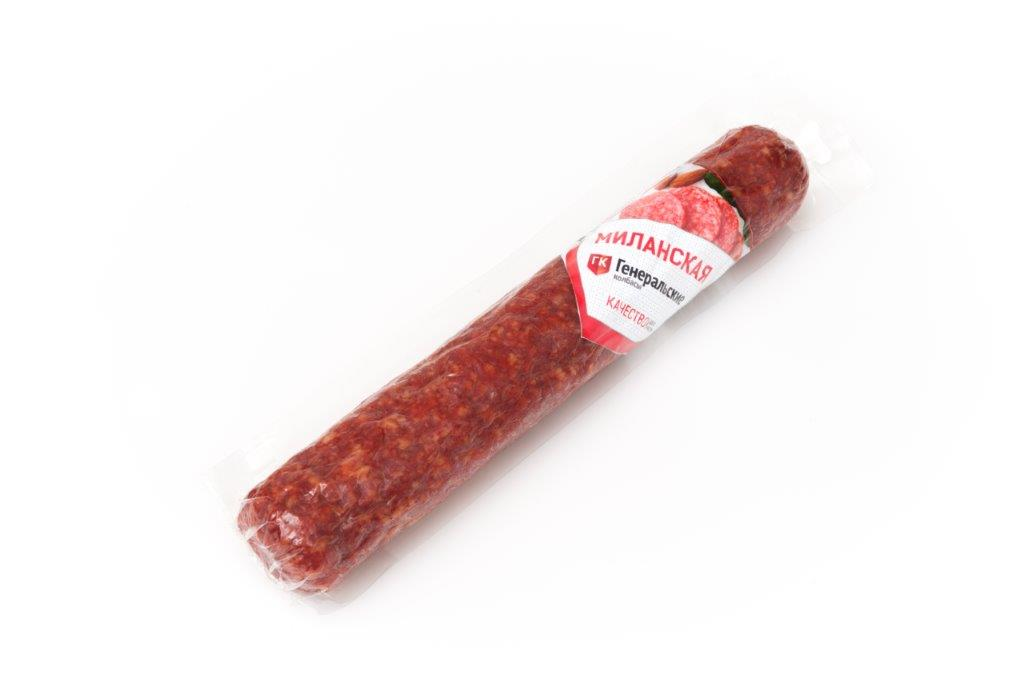 Сырокопченая колбаса ГЕНЕРАЛЬСКИЕ КОЛБАСЫ Миланская производится с использованием средиземноморских специй. Вкус и аромат продукта дарит настоящее удовольствие и приятные ассоциации.