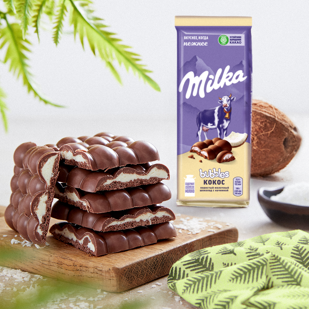 Шоколад Milka Bubbles молочный пористый с кокосом, 92г