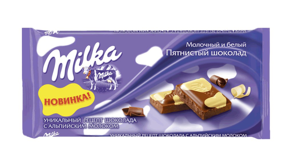Попробуйте сразу два вида шоколада в одной плитке.Пятнистая плитка Milka – это молочный и белый шоколад с добавлением альпийского молока, которое дают такие же пятнистые коровы.Milka – нежность внутри!