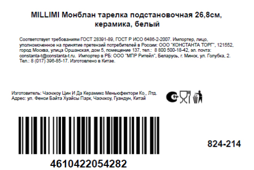 - Тип Тарелка обеденная