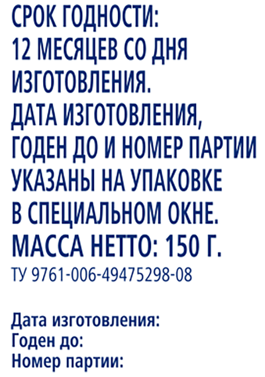 - Вес, объем 150