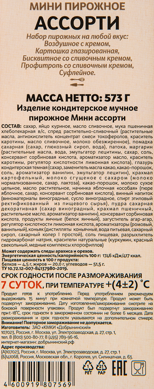 Мини-пирожное Добрынинский ассорти 14шт, 573г