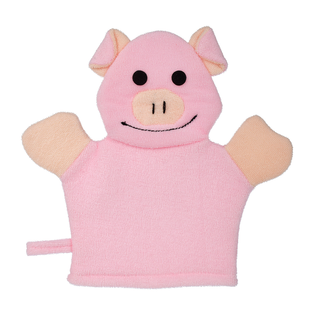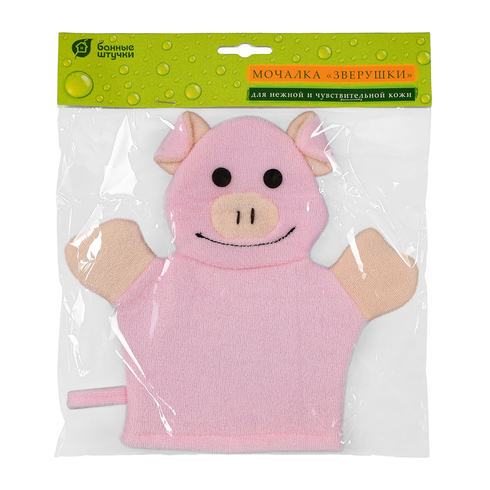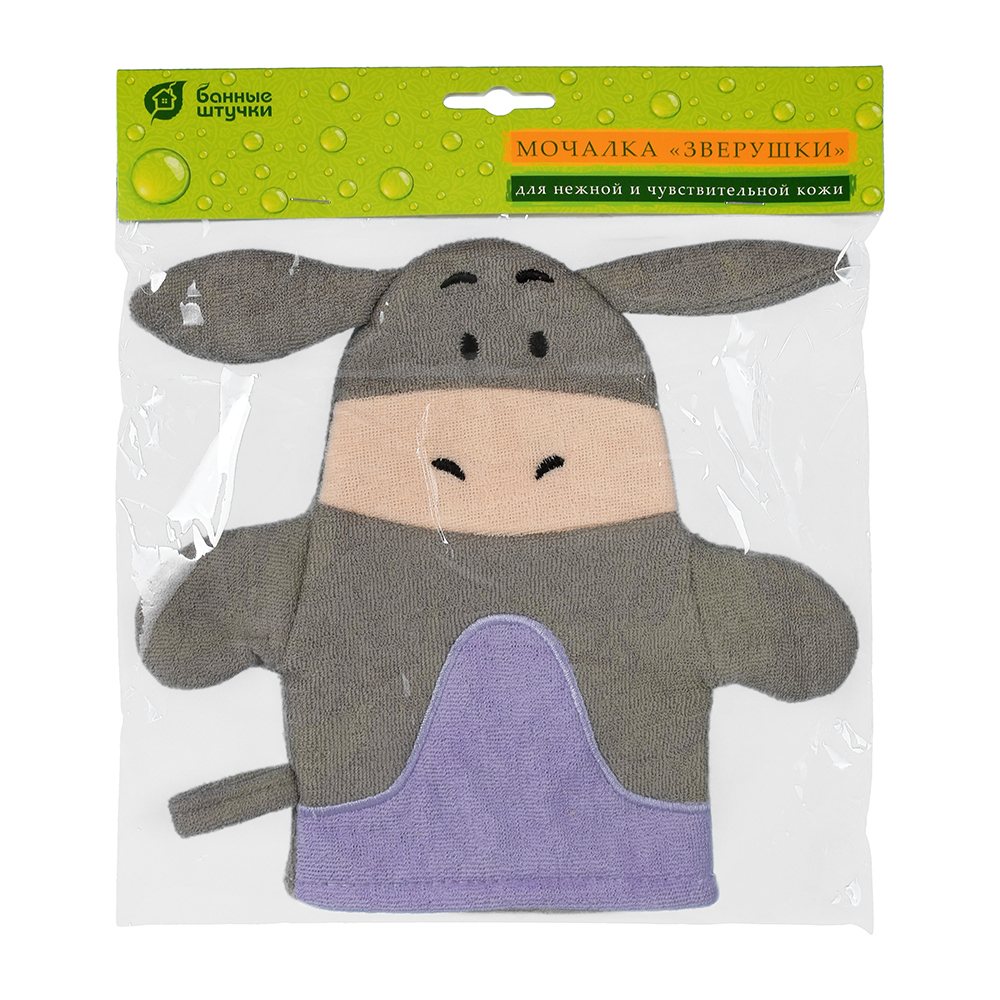 Мочалка-варежка в виде забавных игрушек — ослика, лягушки, зайца, свинки, коровы и бегемота — выполнена из лоскутков мягкой и прочной ткани. Благодаря маленьким вытянутым петелькам на поверхности материала, мочалка создает объемную пышную пену и слегка массирует кожу, не оставляет царапин. Гипоаллергенный материал препятствует размножению бактерий и грибков, отлично выполаскивается и долго служит. Легкая мочалка не занимает много места, поэтому вы можете брать ее с собой в поездки. Чтобы мочалку удобнее было хранить и сушить после использования, в боковой шов вшита аккуратная петля.