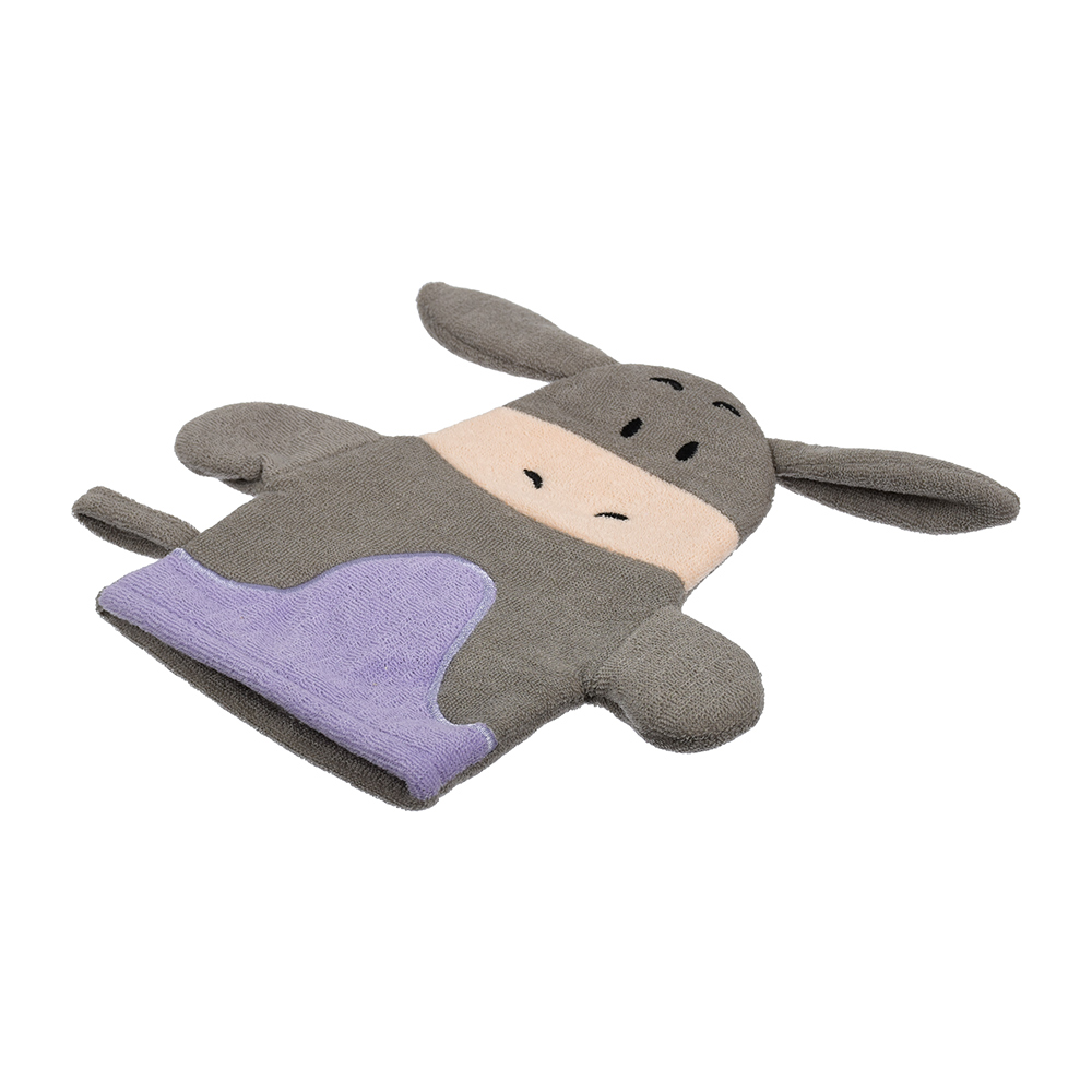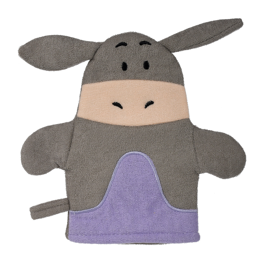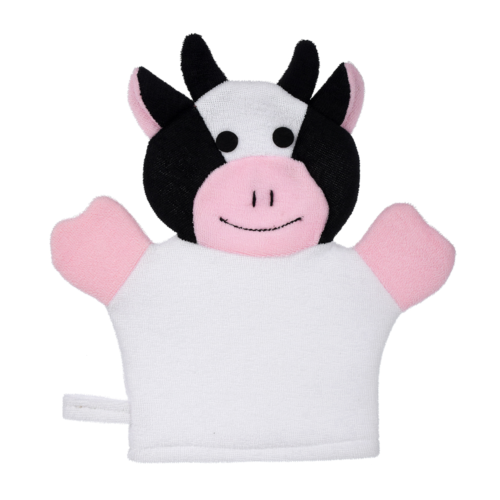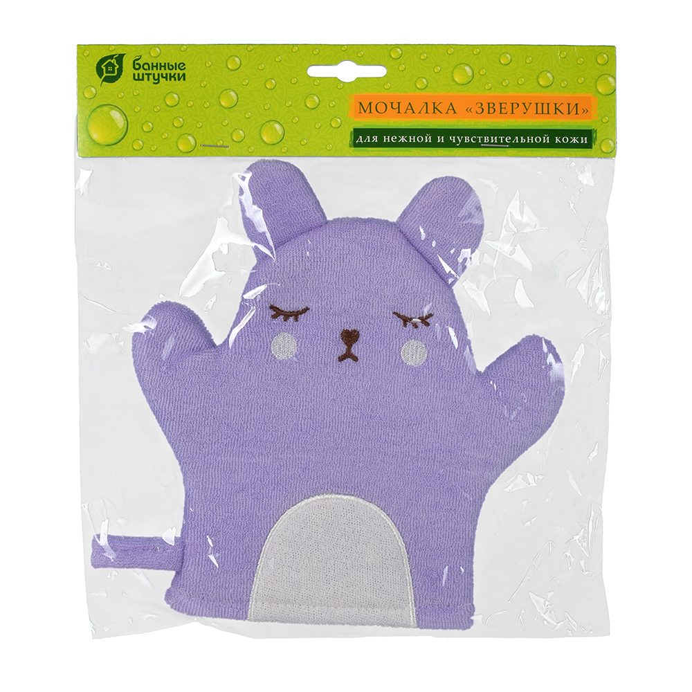 Мочалка-варежка в виде забавных игрушек — ослика, лягушки, зайца, свинки, коровы и бегемота — выполнена из лоскутков мягкой и прочной ткани. Благодаря маленьким вытянутым петелькам на поверхности материала, мочалка создает объемную пышную пену и слегка массирует кожу, не оставляет царапин. Гипоаллергенный материал препятствует размножению бактерий и грибков, отлично выполаскивается и долго служит. Легкая мочалка не занимает много места, поэтому вы можете брать ее с собой в поездки. Чтобы мочалку удобнее было хранить и сушить после использования, в боковой шов вшита аккуратная петля.