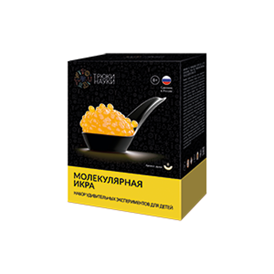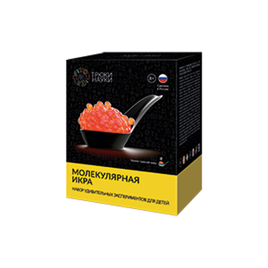 Набор химических экспериментов для детей Молекулярная икра (2 разных набора: с ароматом красной икры, с ароматом дыни). Реагентов хватает на несколько исполнений. Возрастное ограничение 8+