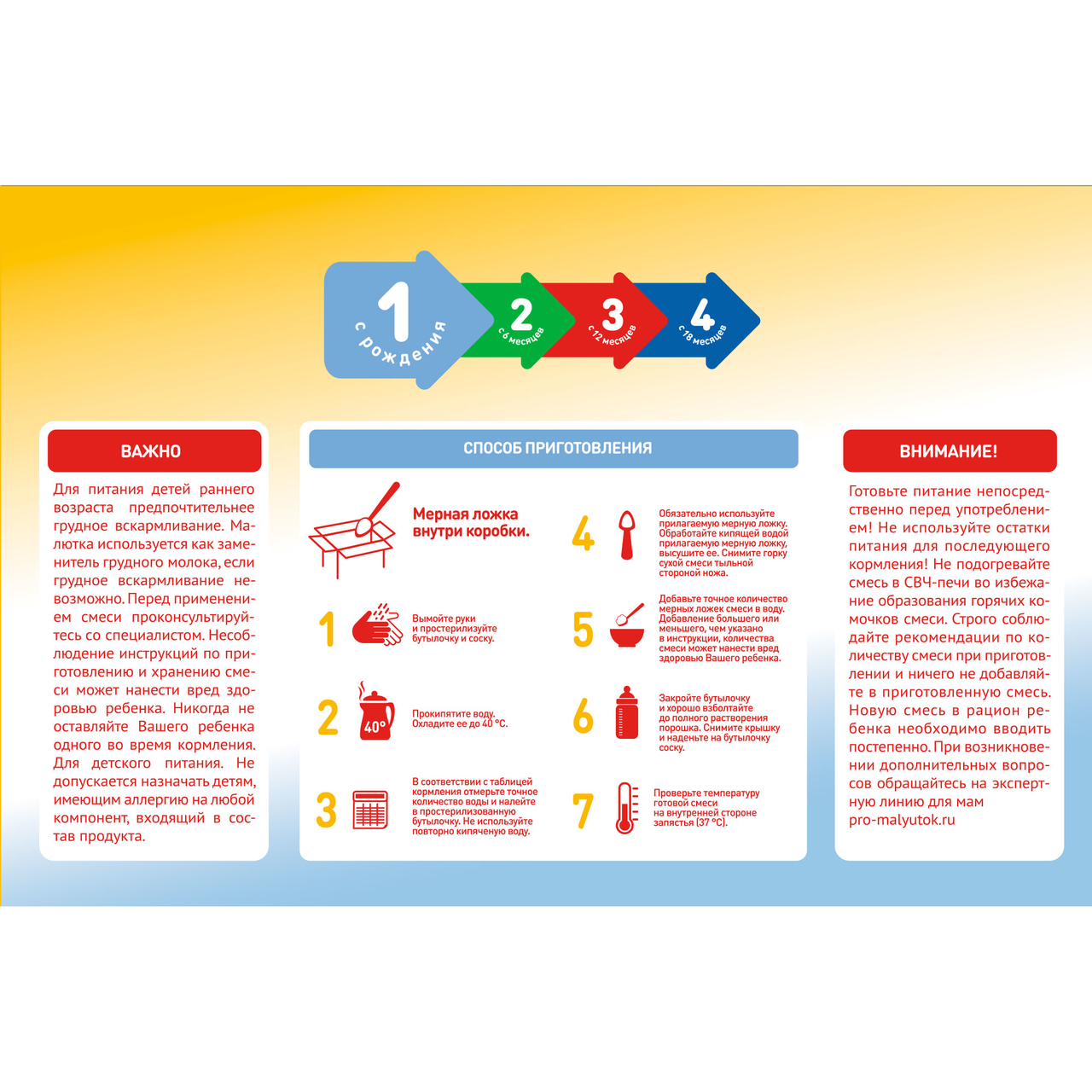 Смесь молочная сухая начальная адаптированная с пребиотиками 1 Малютка для питания детей с рождения. Без использования сахара. Гарантия качества. Европейские ингредиенты. Без консервантов. Без красителей. Без искусственных добавок. Без ГМО. Nutricia. Международные стандарты качества. Оптимальная рецептура; Качественные ингредиенты; Современное производство; Строгий контроль. 2 сердца бьются как 1. Малютку производит компания Nutricia, эксперт в питании для детей раннего возраста. Именно поэтому Малютка соответствует и российским, и международным стандартам качества. У нее оптимальная рецептура, высокие стандарты и строгий контроль производства, качественные ингредиенты.
