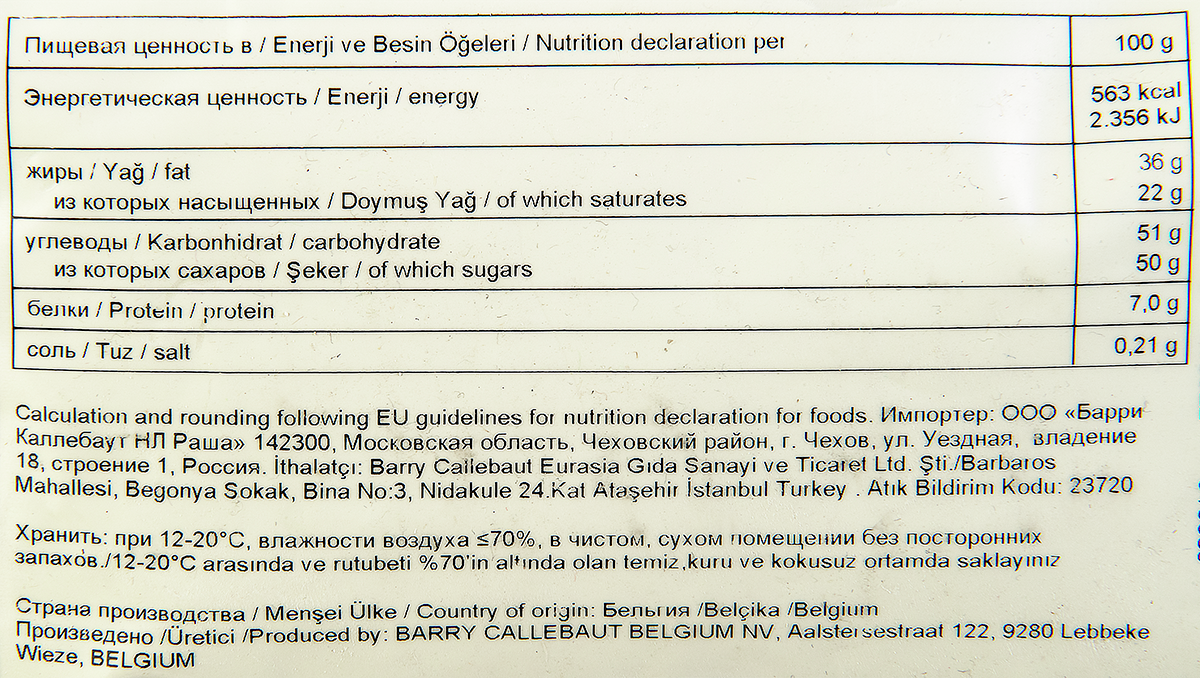 Шоколад рецептуры 823NV – это настоящий шоколад бельгийского производства, характеризующийся высоким качеством и превосходным вкусом. В нем отлично сбалансированы такие ингредиенты как молоко, какао и карамель. Шоколад выпускается в специально разработанной для быстрой плавки капельках – каллетах. Это небольшие шоколадные монетки, которые, благодаря своему размеру, быстро нагреваются (чего нельзя сказать о пли��ках или блоках) и превращаются в жидкое состояние. Кроме того, каллеты удобно дозировать. Шоколад может быть использован как для глазировки конфет и других кондитерских изделий, так и для отлива фигурок и конфет.