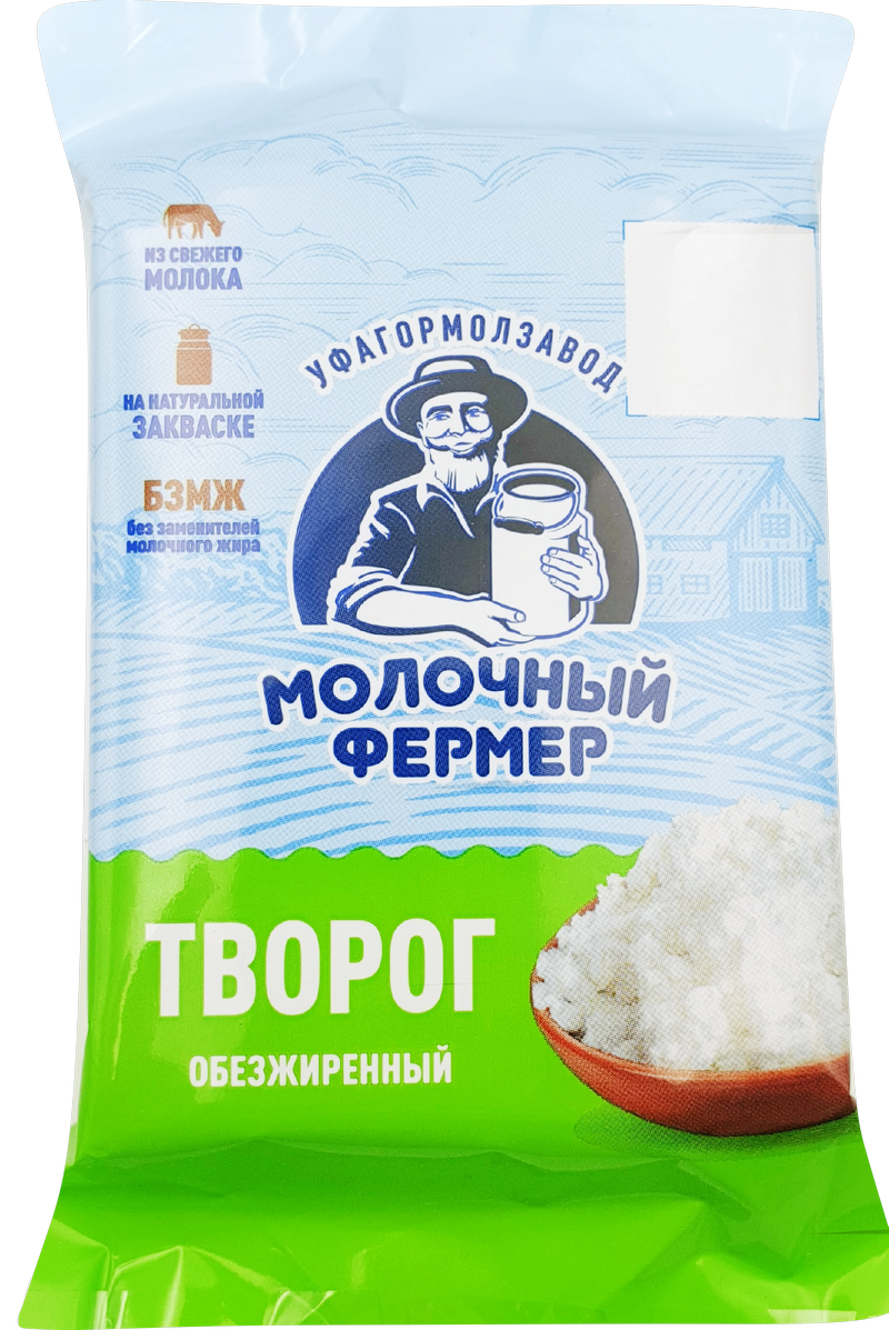 Творог Молочный фермер— это диетический кисломолочный продукт, получаемый в результате сквашивания молока. Помимо большого количества кальция и важных витаминов, творог чрезвычайно богат полноценным белком, содержащим все незаменимые для организма аминокислоты. Усвояемость белка из творога (казеина) гораздо выше, чем у мяса, а длительность его усвоения - дольше, таким образом, после приема творога вы не будете чувствовать себя голодным еще очень долгое время. Значение белка в организме сложно переоценить, ведь из него строятся большая часть тканей человеческого организма и гормоны.