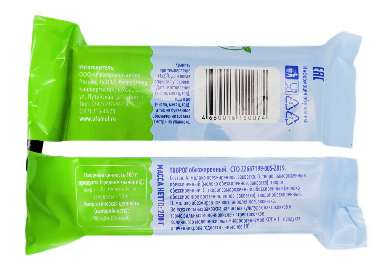 Обезжиренное молоко с использованием закваски на чистых культурах лактококков и термофильных молочнокислых стрептококков.