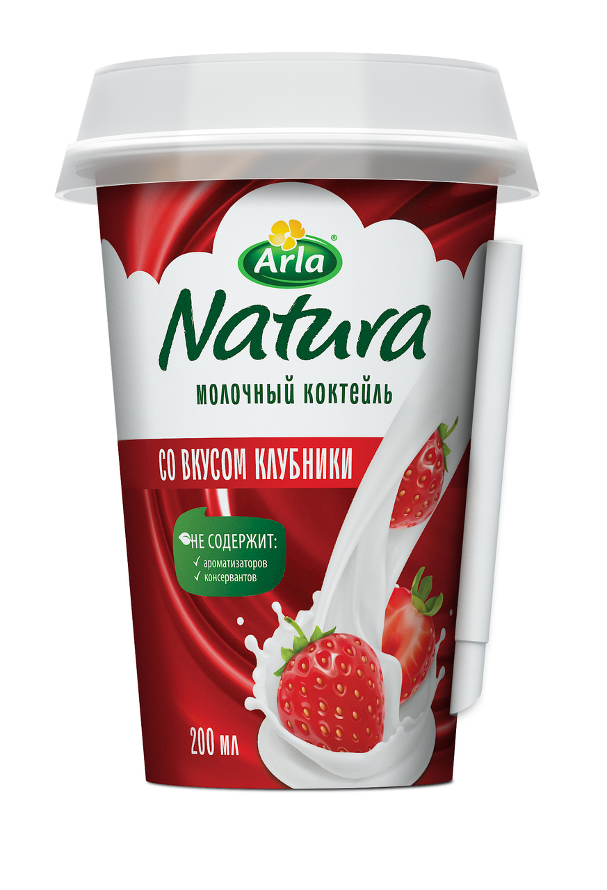 Молочный ультрапастеризованный коктейль Arla Natura cо вкусом клубники производится в Дании из высококачественного молока самого высокого класса А. Современное производство соответствует европейским и международным стандартам качества. Не содержит красителей и консервантов. Arla Natura - полезное удовольствие!