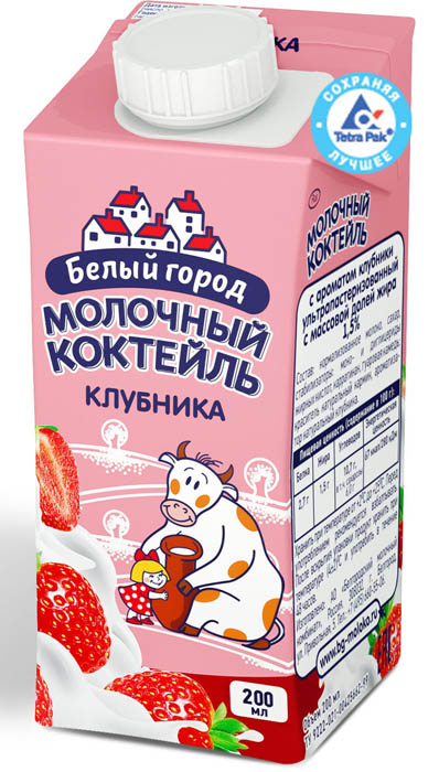 Молочный коктейль БЕЛЫЙ ГОРОД Клубника, 200мл