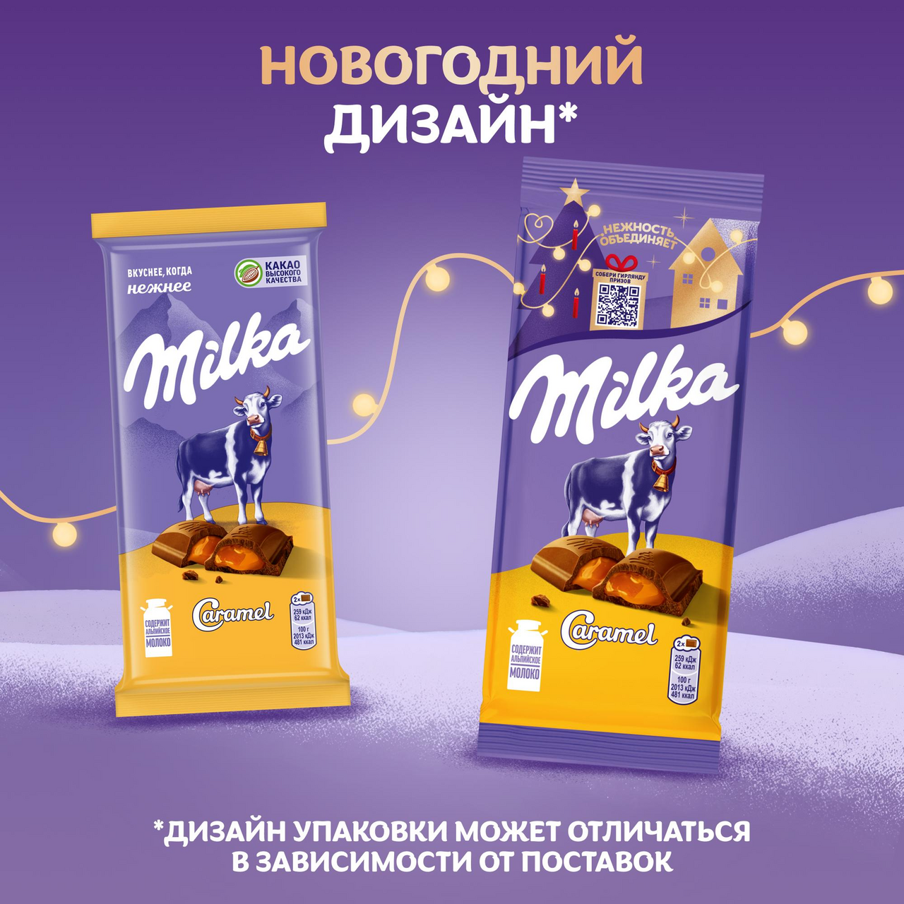 Участвует в конкурсе: Выиграйте кофемашину на сладкое! Совершите покупку товаров-участников на сумму от 1500₽ с 23 октября 2025г. по 14 января 2026г. и получите шанс выиграть кофемашину или другие сладкие призы! Чем больше покупок - тем больше шансов на победу! Подробнее об акции - https://cdn.metro-cc.ru/ru/mndlz_2025.pdf. Молочный шоколад Milka с карамельной начинкой — изысканное сочетание мягкой карамели и нежного молочного шоколада. Восхитительный вкус, который захватывает с первого кусочка — то, чем стоит порадовать близких в любой день! Шоколад молочный Milka с карамелью изготовлен из какао высокого качества с добавлением настоящего альпийского молока: поэтому он обладает такой нежной текстурой и буквально тает во рту. Шоколад с карамелью Milka подходит не только к чаю или кофе: его можно взять с собой на работу, учебу, в поездку или насладиться нежным вкусом за просмотром любимого фильма. Дарите своим близким нежность вместе с шоколадом Milka!