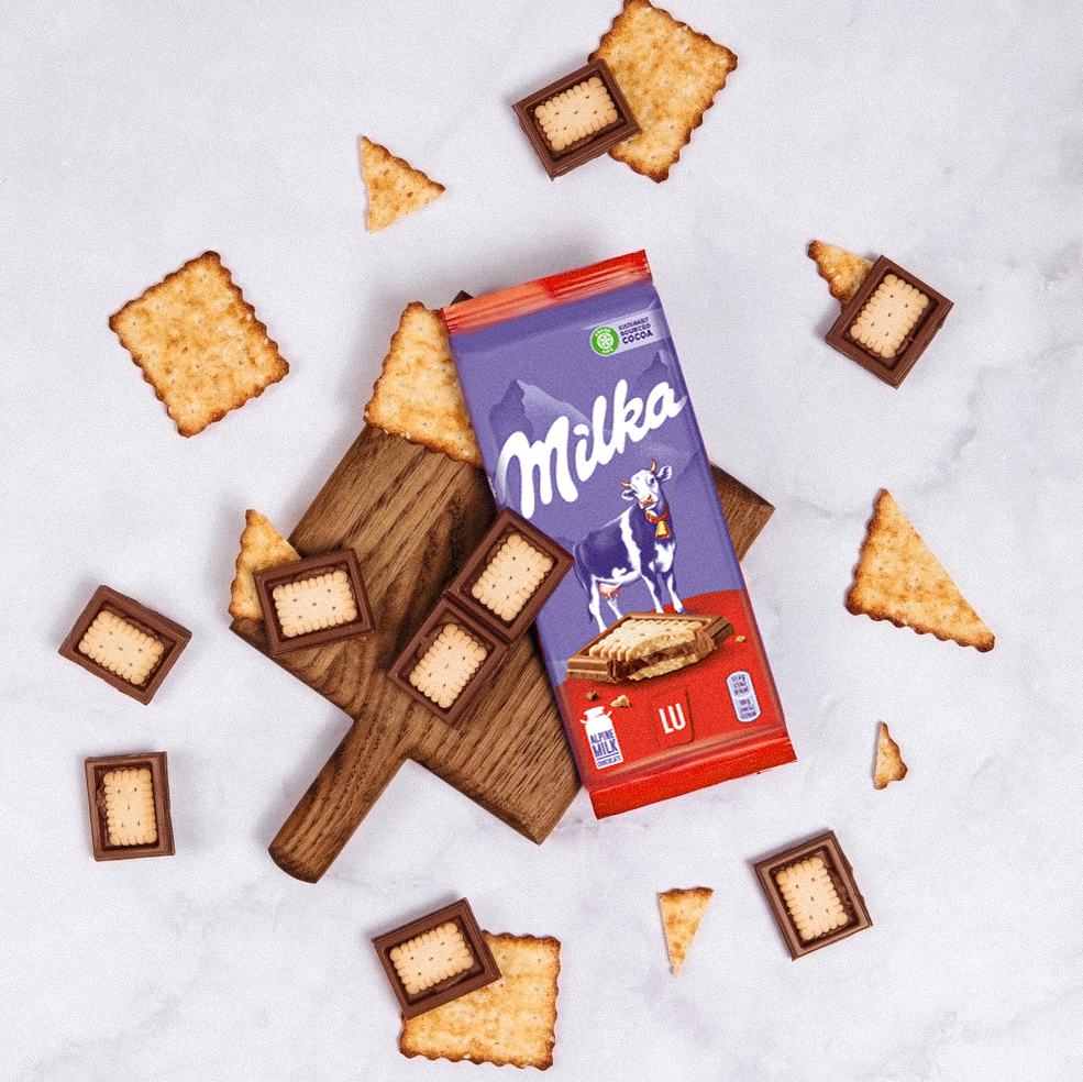 Познакомьтесь с неожиданно нежным сочетанием молочного шоколада и хрустящего сладкого печенья Lu. Две абсолютно разные текстуры встретились в одной плитке Milka, чтобы подарить вам незабываемые вкусовые открытия. Делитесь удивительной нежностью шоколада с печеньем с друзьями и близкими и не уставайте открывать новые яркие сочетания. Два вкуса — одно удовольствие!