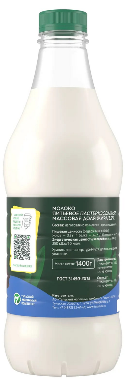 Молоко Бежин луг 3,2%, 1.4кг